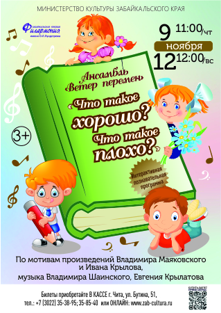 Премьерную программу для юных забайкальцев и их родителей «Что такое хорошо и что такое плохо?» представят артисты ансамбля «Ветер перемен».