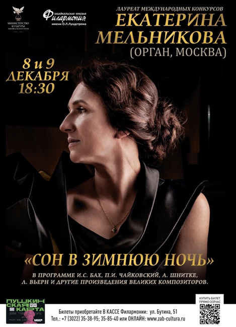 В органном зале филармонии концертную программу «Сон в зимнюю ночь» представит российская органистка, солистка Московской Государственной Академической Филармонии, лауреат международных конкурсов Екатерина Мельникова.