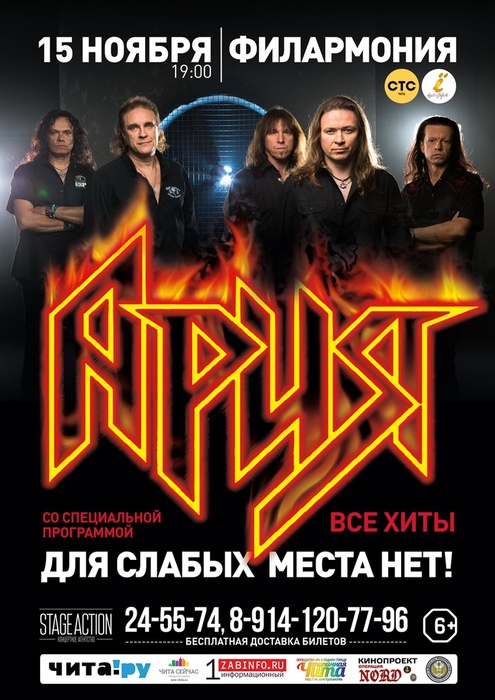 15 ноября, в 19.00 в Забайкальской краевой филармонии им. О.Л. Лундстрема состоится долгожданный концерт группы «АРИЯ» со специальной программой "Для слабых места нет!".