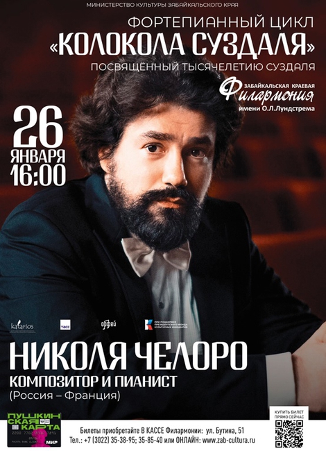 6 января в 16:00 в камерном зале филармонии композитор и пианист Николя Челоро (Россия – Франция) представит трогательный и проникновенный фортепианный цикл «Колокола Суздаля».