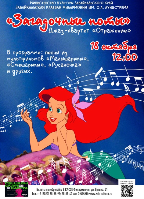 18 октября в 12:00 артисты джаз-квартета «Отражение» и солистка Софья Кочнева представят забайкальским зрителям премьерную программу для всей семьи - «Загадочные ноты».