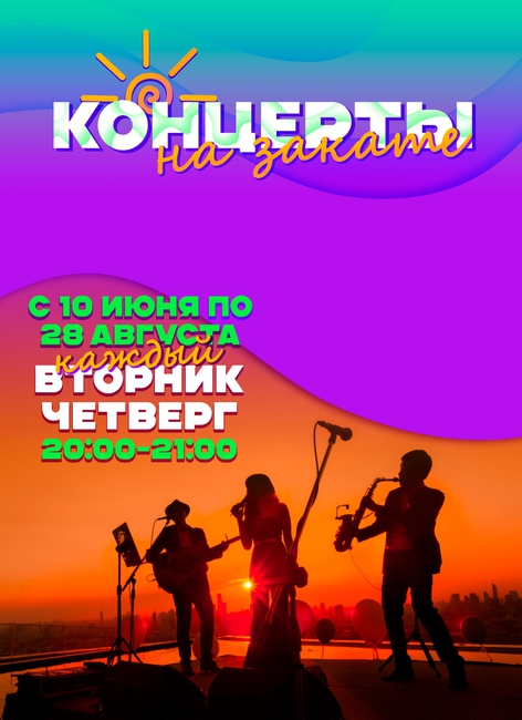 Проект «Концерты на закате» — это не просто музыкальные вечера, а настоящее летнее настроение, которое приходит в наш город вместе с каждым закатом. Это время для отдыха, вдохновения и наслаждения прекрасной музыкой под открытым небом.