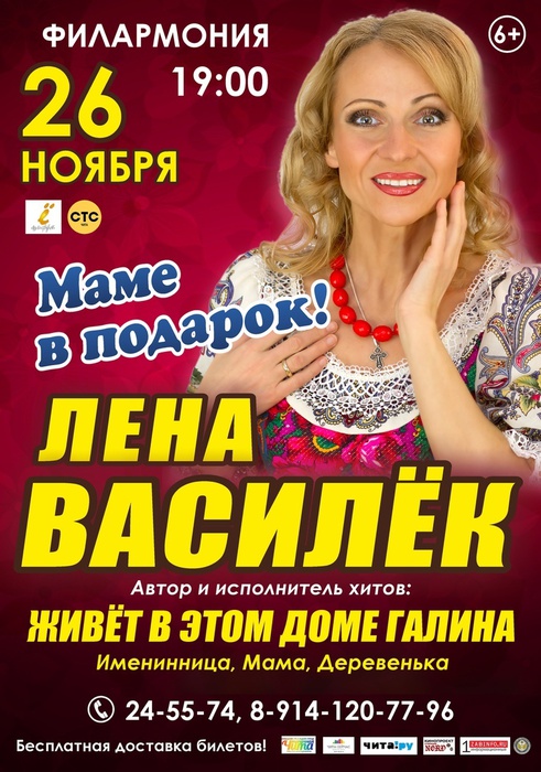 26 ноября 2018 в 19:00 в Забайкальской краевой филармонии состоится концерт Лены Василёк.