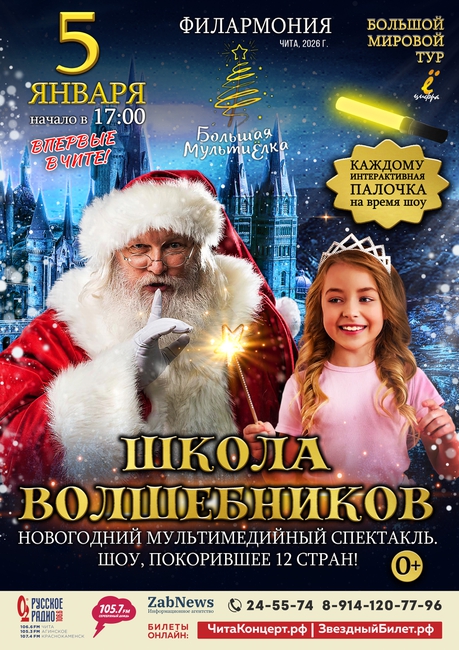 Впервые в Чите! 5 января в филармонии! Мультимедийный спектакль «Школа волшебников»! Шоу, покорившее 12 стран!