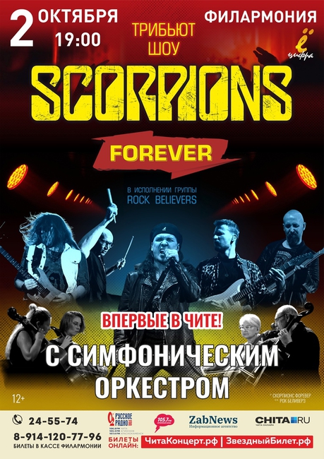 Для вас выступит группа Rock Believers — лучший трибьют Scorpions на постсоветском пространстве, вместе с симфоническим оркестром. Художественный руководитель проекта — Виктор Бабарикин, заслуженный артист Республики Беларусь.