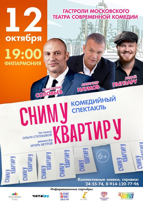 12 октября в Забайкальской краевой филармонии пройдет спектакль "Сниму квартиру".