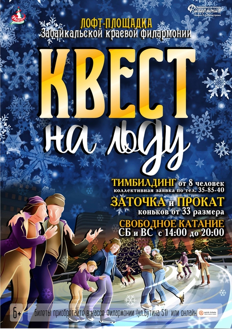 «Квест на льду» - превосходный способ в самом центре столицы, на свежем воздухе, отдохнуть и повеселиться семьей, друзьями, одноклассниками. В ходе программы участники, объединив свои усилия, пройдут эстафеты на льду, изготовят скульптуру из снега, примут участие в соревновании по кёрлингу, покатаются на коньках и многое другое. КОЛЛЕКТИВНЫЕ ЗАЯВКИ по телефону 35-85-40.