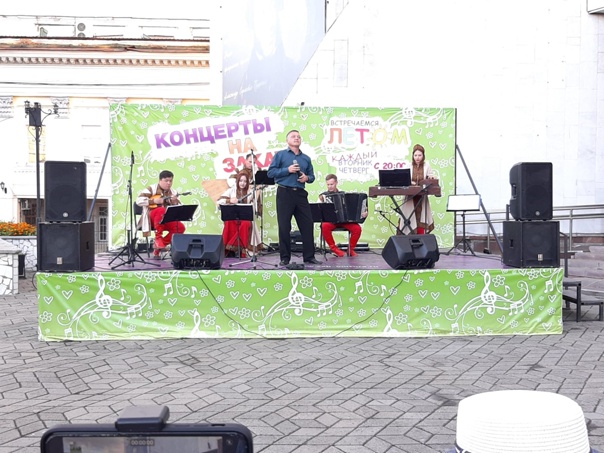 12 июля у главного входа в филармонию состоялся «Концерт на закате», в исполнении Государственного Русского инструментального ансамбля им. Н.П. Будашкина, ансамбля «Ветер перемен», солиста филармонии Баясхалана Ламажапова и солиста Максима Среды.