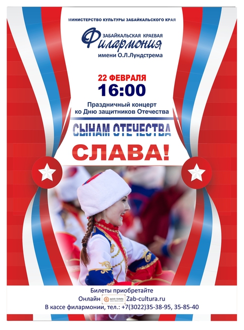 22 февраля в 16:00 в Забайкальской филармонии состоится концерт, посвященный Дню Защитника Отечества.