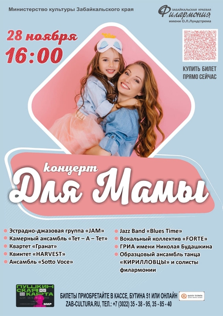 28 ноября в 16:00 артисты Забайкальской филармонии представят праздничную программу «Для Мамы».