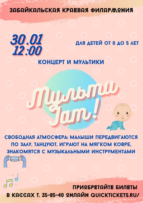 30 января в 12:00 в рамках проекта «Бейби курс» наши самые маленькие зрители смогут насладится увлекательной музыкальной программой из мира мультипликации.