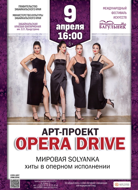 9 апреля в 16:00 в рамках фестиваля «Цветущий Багульник» состоится концерт арт-проекта «Opera Drive» (г. Москва). В оперном исполнении прекрасных вокалисток программа - «МИРОВАЯ SOLYANKA».