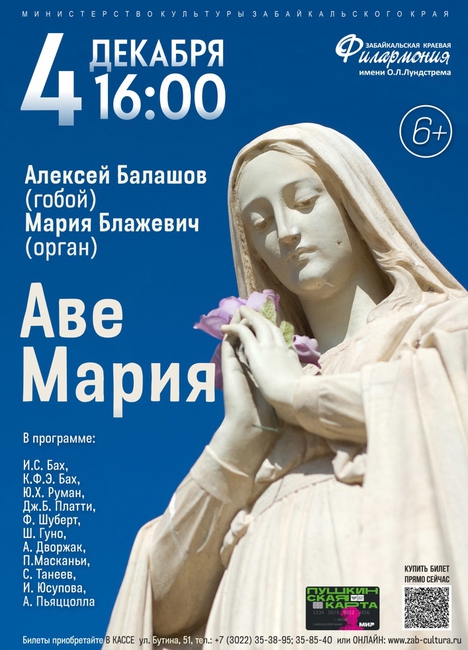 А уже 4 декабря, читинцы и гости столицы смогут насладиться концертной программой из шедевров «Ave Maria».