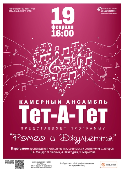 19 февраля в 16:00 новую концертную программу «Ромео и Джульетта» представит камерный ансамбль солистов «Тет – А – Тет».