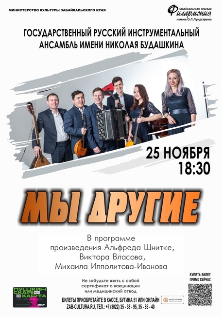 25 ноября в 18:30 артисты ГРИА имени Николая Будашкина представят совершенно новый формат концерта «Мы другие»! Народной музыки не будет!