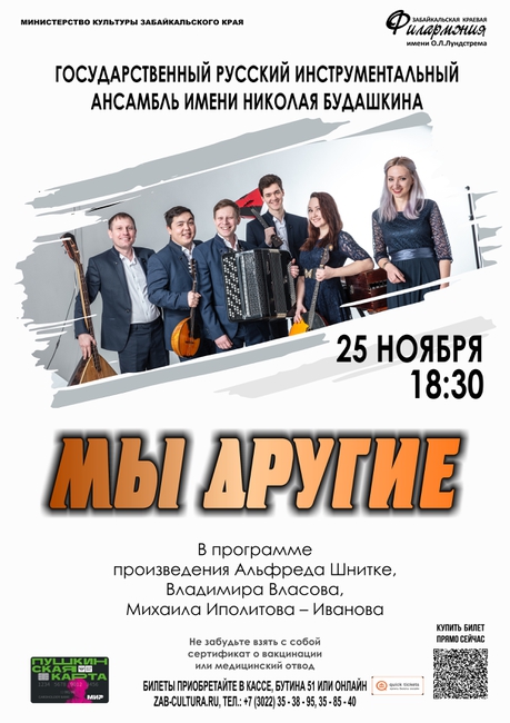 25 ноября в 18:30 артисты ГРИА имени Николая Будашкина представят совершенно новый формат концерта «Мы другие»! Народной музыки не будет!
