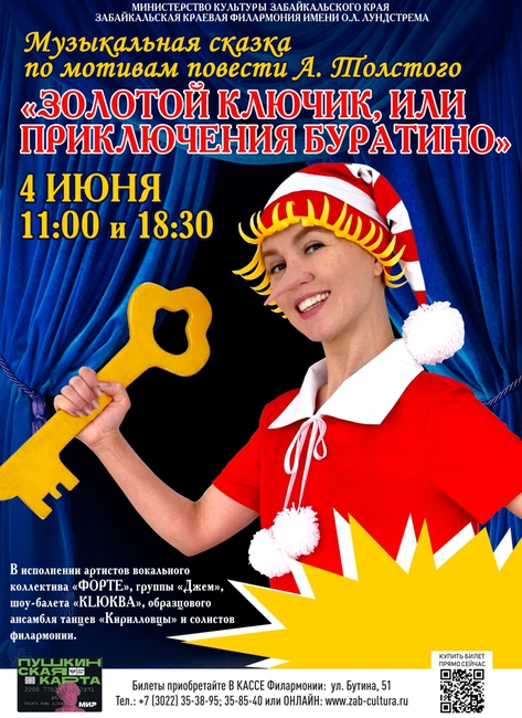 Замечательная музыкальная сказка о невероятных и забавных приключениях Буратино и его друзей не оставит равнодушными и взрослых и детей.