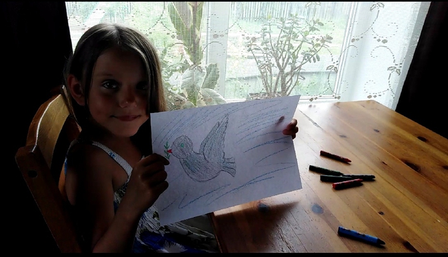 Во Всероссийском флешмобе #Голубьмира принимают участие люди разных профессий и разных возрастов, предлагаем вашему вниманию работу Анастасии Пыхтиной (12 лет) и Наташа Пыхтина (7лет).