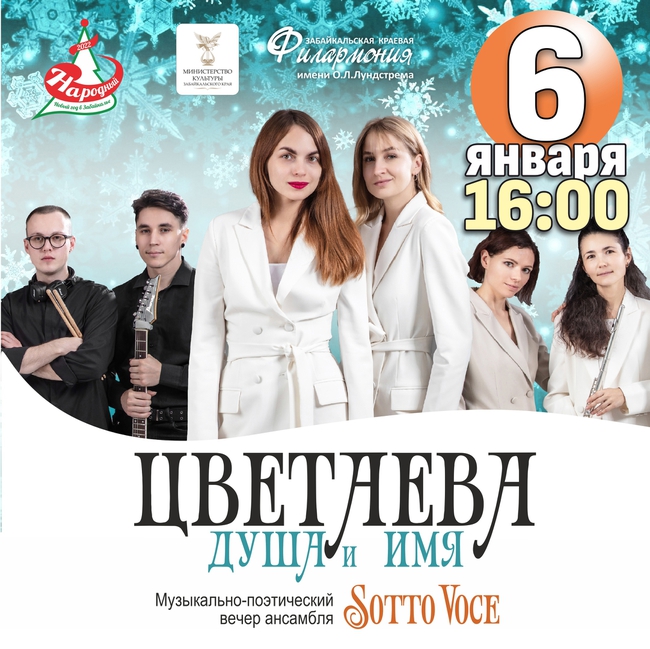 6 января в 16:00 ансамбль «Sotto Voce» представит праздничную программу, посвященный творчеству поэтессы Серебряного века - «Цветаева. Душа и имя».