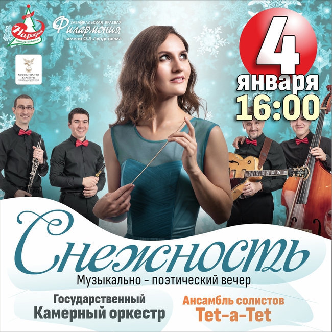 4 января в 16:00 состоится музыкально – поэтический вечер «Снежность» в исполнении Государственного камерного оркестра и ансамбля солистов «Тет – А – Тет».