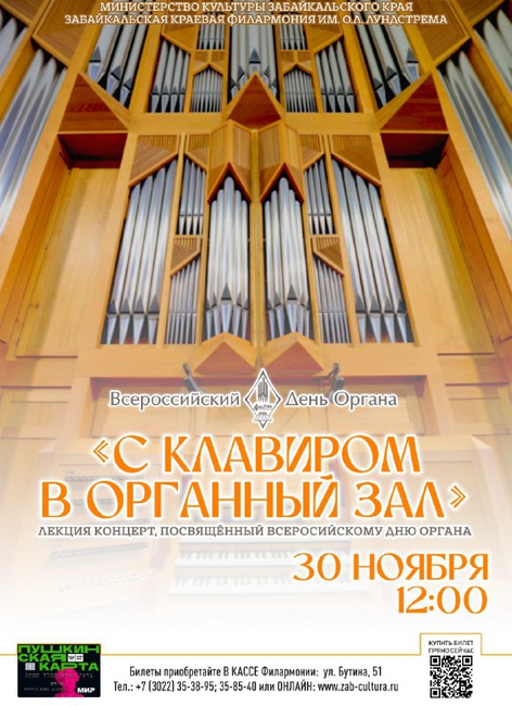 30 ноября в 12:00 Забайкальская краевая филармония приглашает вас на особое событие, посвящённое Седьмому всероссийскому дню органа.