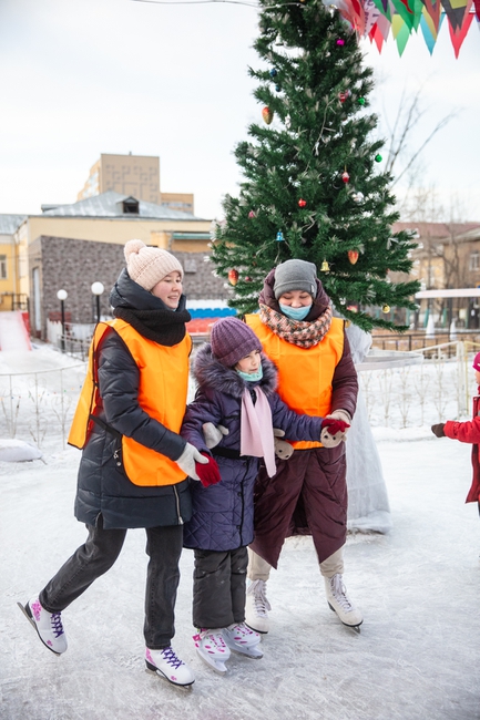 Для детей 45 минут катания с инструкторами, которые обязательно помогут, если ребенок еще не успел научиться уверенно стоять на коньках.