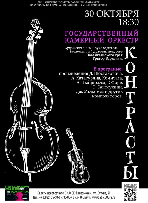 30 октября в 18:30 Государственный камерный оркестр представит полюбившуюся забайкальцам концертную программу «Контрасты».