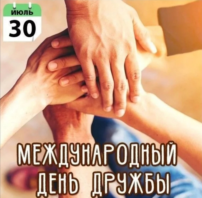 30 июля отмечается Международного дня дружбы. На английском название праздника звучит как International Day of Friendship. Это одна из самых молодых интернациональных праздничных дат. Люди в этот день поздравляют друг друга, уделяя особенное внимание своим знакомым и друзьям из других стран и принадлежащих к другим народам.