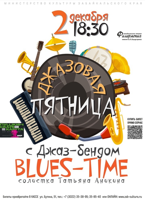 Уже в эту пятницу 02 декабря в 18:30 настоящий и интересный джаз снова прозвучит в Забайкальской филармонии с Jazzband «BLUESTIME».