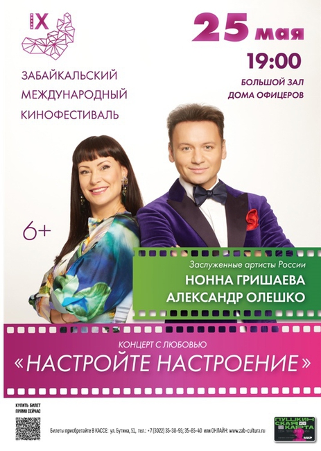 В Большом зале Дома Офицеров 25 мая в 19.00 состоится концерт «Настройте настроение» от известных российских артистов - Александра Олешко и Нонны Гришаевой.