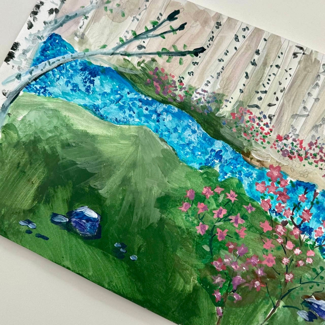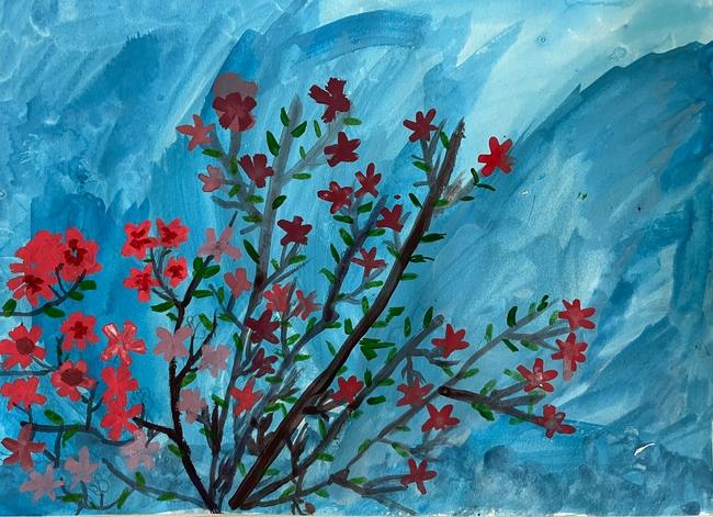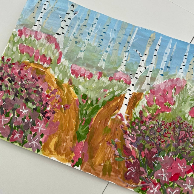 Рисуем гармонию музыки, пробуждение природы и символ фестиваля — цветущий багульник.