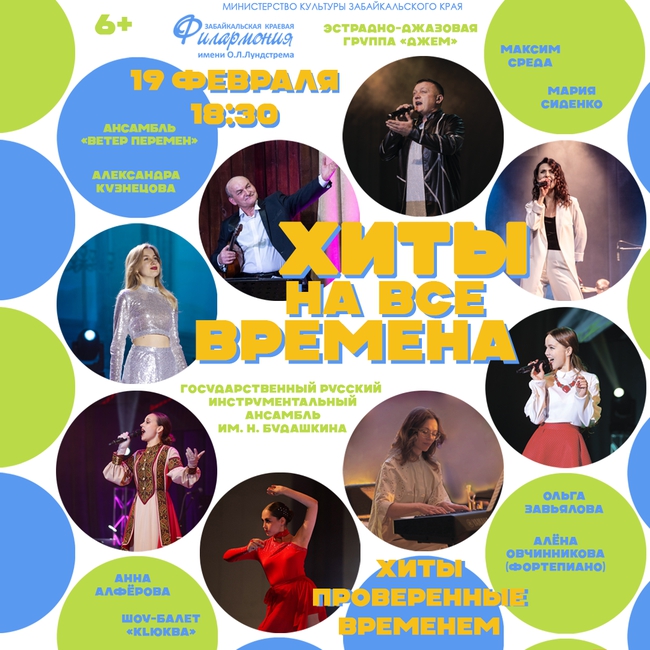 19 февраля в 18:30 артисты филармонии представят забайкальским зрителям премьерную программу «Хиты на все времена», в которую вошли песни заслужившие признание критиков и публики, а также прошли испытание временем.