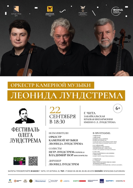 22 сентября 18:30 на сцене большого концертного зала филармонии молодой оркестр под управлением Леонида Лундстрема представит для забайкальцев специально подготовленную для IV Фестиваля Олега Лундстрема концертную программу.