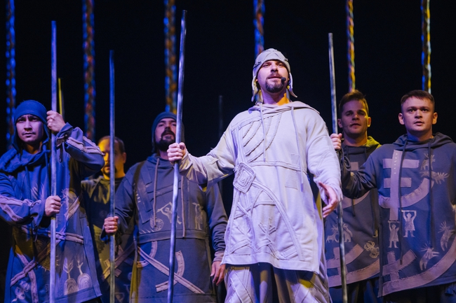 Зрелищная постановка: красочные костюмы с ручной росписью, декорации и реквизит, создающие атмосферу мифа;