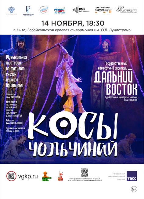 14 ноября в 18:30 Государственный ансамбль «Дальний Восток» представит в Забайкальской краевой филармонии мюзикл‑спектакль «Косы Чольчинай» — яркую и душевную историю о любви, испытаниях и древних традициях народов Приамурья. Это сочетание этнических мотивов и современной сценической драматургии — для всей семьи.