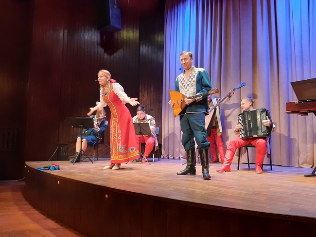 В программе прозвучали произведения: «Калинка», «Варенька», «Светит месяц», частушки.