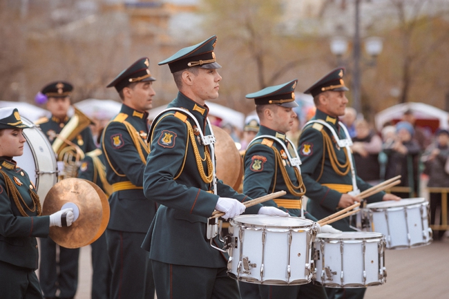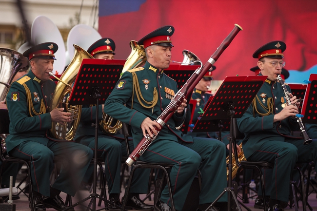 На площади имени Ленина прошло настоящее торжество музыки и патриотизма фестиваль духовых оркестров «Даурские марши» посвящённый 90-летию Забайкальского военного округа.