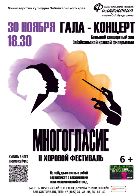 30 ноября в 18:30 состоится гала-концерт участников фестиваля «Многогласие». В программе примут участие 16 коллективов со всего края, на одной сцене выступят детские, младшие и старшие хоры ДШИ хоры ветеранов, вокальные ансамбли в окружении архиерейского и студенческих хоров.