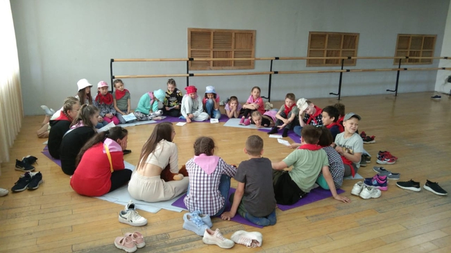 После прогулки директор лагеря Мария Пыхтина провела для детей инструктаж по безопасности, а затем юные гости ознакомились с кружками, которые они могут посещать на протяжении всего лагеря, а именно караоке вместе с солистом филармонии Максимом Средой, актерское мастерство вместе с Сергеем Ильковым, рукоделие с Марией Пыхтиной и шумовой оркестр вместе с коллективом филармонии Академия Маленьких Гениев.