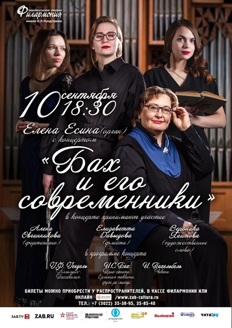 «И.С.Бах и его современники» - так называется новая программа, которую в Органном зале представит солистка Забайкальской краевой филармонии Елена Есина совместно с Алёной Овчинниковой (фортепиано), Елизаветой Давыдовой (флейта) и Вероникой Хаитовой (художественное слово).