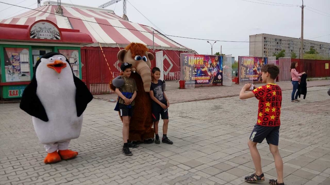 Цирк «Шапито» открыл на своей площадке череду мероприятий для всех маленьких читинцев 1 июня, в Международный День защиты детей. Каждого ребенка встречали яркие ростовые куклы: Миньоны, пингвин из Мадагаскара, белка из «Ледникового периода», мамонтёнок и осьминог. Вместе с ребятами они устроили детскую дискотеку и фотосессию на память.