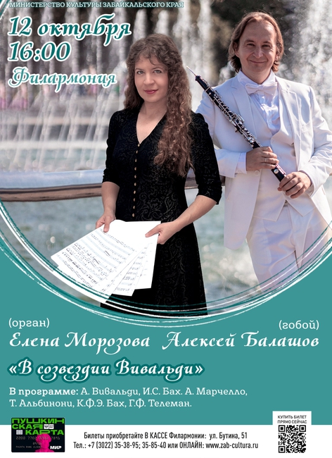 12 октября в 16:00 солистка филармонии Елена Морозова (орган) и Алексей Балашов (гобой, Москва) представят публике программу «В созвездии Вивальди».