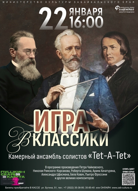 22 января в 16:00 в камерном зале Забайкальской краевой филармонии ансамбль солистов «Тет-А-Тет» представит зрителям премьерную программу «Игра в классики».