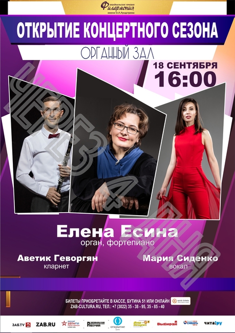 Дорогие, Забайкальцы! Приглашаем Вас на открытие филармонического сезона в органном зале с Еленой Есиной, Аветиком Геворгяном и Марией Сиденко.