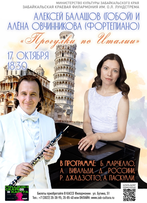 Артисты представят забайкальским зрителям программу «Прогулки по Италии». Это событие обещает стать настоящим праздником для ценителей классической музыки, объединяя в себе изысканность итальянской композиторской школы и виртуозное исполнение на гобое и органе.
