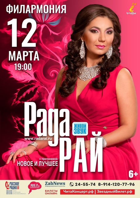 12 марта в 19:00 на сцене большого концертного зала филармонии концертную программу «Ты душа моя» представит российская эстрадная певица Рада Рай.