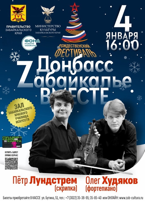 В новогодние каникулы забайкальцев ждет по-настоящему теплое, музыкальное, насыщенное выступлениями талантливых и популярных артистов событие. Впервые в Забайкальском крае с 4 по 9 января пройдет Рождественский фестиваль «Донбасс и Zабайкалье. Вместе». Фестиваль проходит при поддержке Правительства Забайкальского края, Министерства культуры Забайкальского края и Фонда развития Забайкальского края.