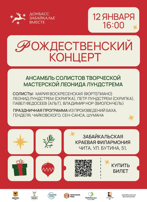 12 января в 16:00 в фойе Большого зала Забайкальской филармонии пройдет концерт ансамбля солистов Творческой мастерской Леонида Лундстрема в рамках уже ставшего традиционным рождественского фестиваля «Донбасс и Zабайкалье».