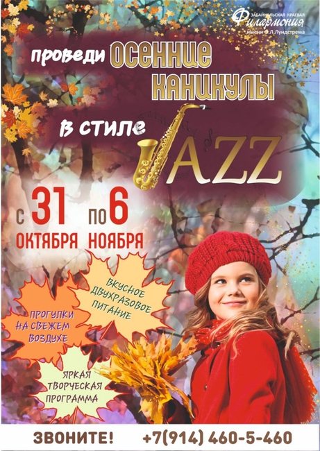 Осенние школьные каникулы в стиле JazzДжаз - это смелая, яркая и непредсказуемая музыка. Именно так мы предлагаем провести свои каникулы ребятам от 6 до 12 лет