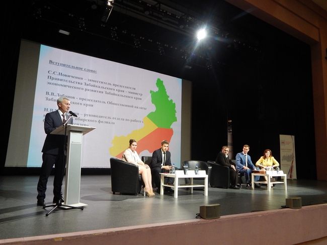 С докладами со сцены филармонии выступали представители 12 учреждений, в том числе, заместитель председателя Правительства Забайкальского края, министр экономического развития Сергей Новиченко, председатель Общественной палаты Забайкальского края, заместитель директора по общим вопросам Забайкальской краевой филармонии им. О.Л, Лундстрема Владимир Лобанов, руководитель отдела по работе с клиентами Сибирского филиала ООО «РТС-Тендер» Николай Мананкин.